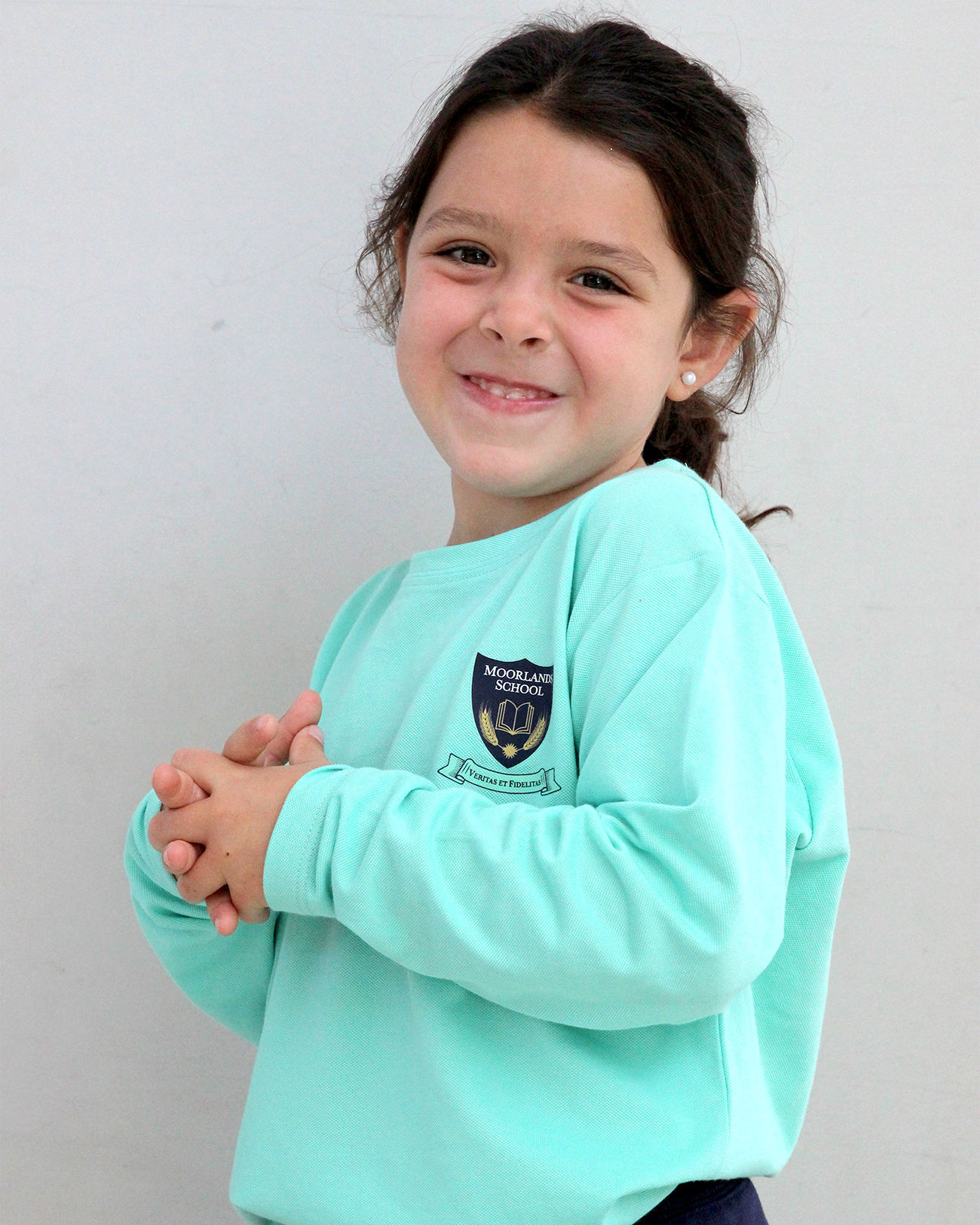 Remera de manga larga para niño y niña, confeccionada en 55% algodón y 45% poliéster.